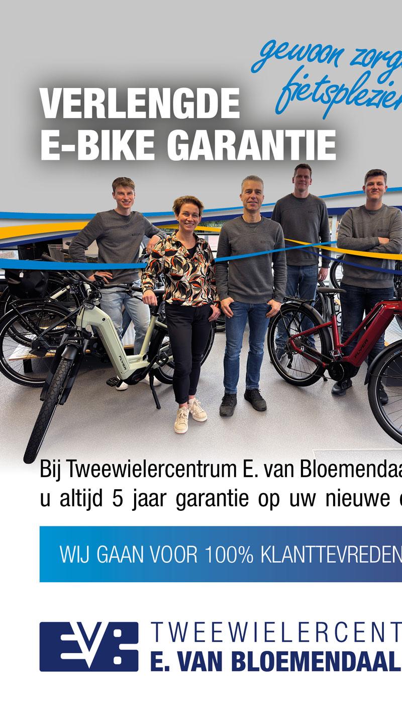 Bij Tweewielercentrum E. van Bloemendaal krijgt u altijd 5 jaar garantie op uw nieuwe e-bike!